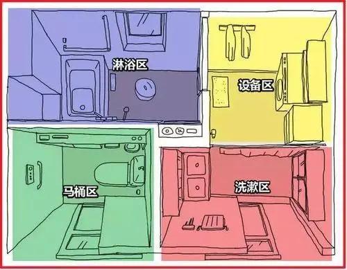 我们将卫生间分为洗漱区、马桶区、淋浴区、设备区。