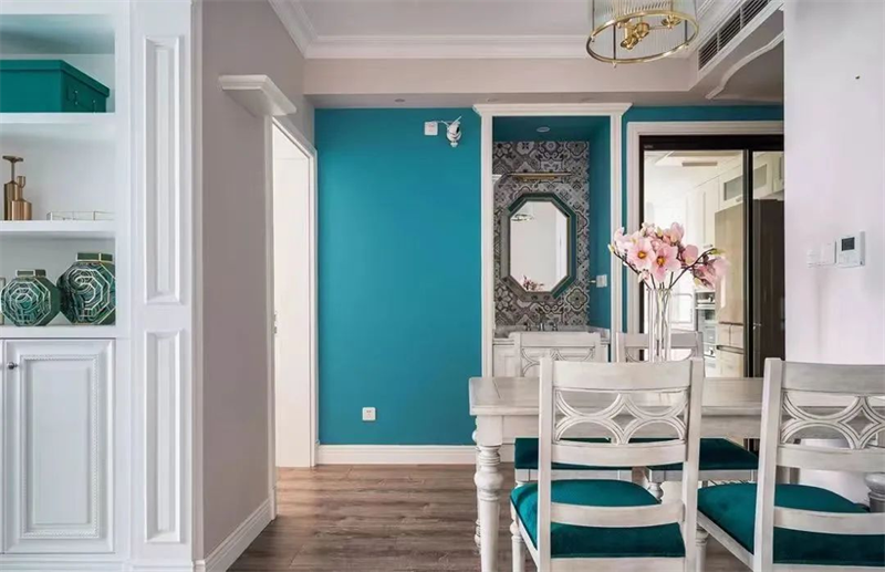 120㎡轻奢美式风,孔雀蓝打造明媚质感的家
