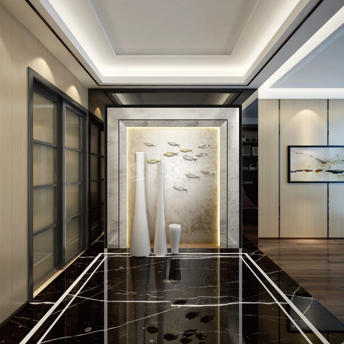 主要材料丨大理石、镜钢线条、钢化玻璃